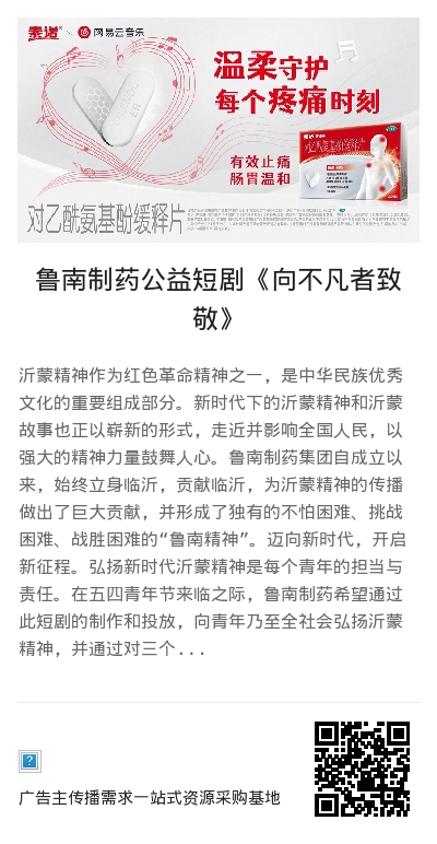 4月28日,进入预热期,学院奖微博账号投放预告海报。5月4日青年节,以平凡致不凡,鲁南制药传承沂蒙精神短剧青年节燃情上线,凤凰网、新浪网、搜狐、微博等50多家媒体全平台同时投放。