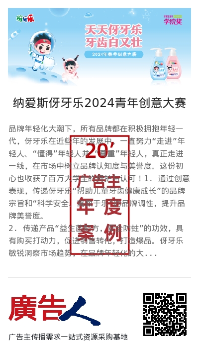 历史五月,赛事共收获15491组青年创意,深入35所高校,与千名学子深度对话,解析命题,共创品牌。伢牙乐不仅抢占先机破圈“年轻力”,更斩获百万大学生喜欢与拥护,成功将“科学安全、寓教于乐”的护牙理念深入年轻心智,一招锁定未来市场!