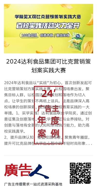 2024年达利食品以“实战”为初心,首次创新发起可比克营销策划方案实践大赛。从校园场景出发,聚焦目标人群,以校园活动的策划和落地作为切入点,让学生的策划不再纸上谈兵。这是品牌深入高校场景的创新探索,更是驱动高校教育实践的一大举措。