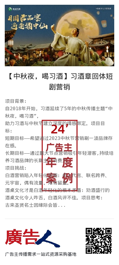 自2018年开始,习酒延续了5年的中秋传播主题“中秋夜,喝习酒”,