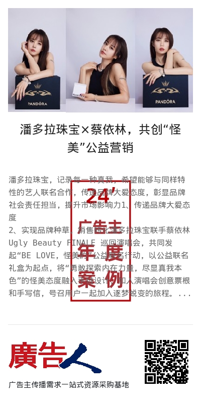 潘多拉珠宝,记录每一种真我,希望能够与同样特性的艺人联名合作,传递品牌大爱态度,彰显品牌社会责任担当,提升市场影响力