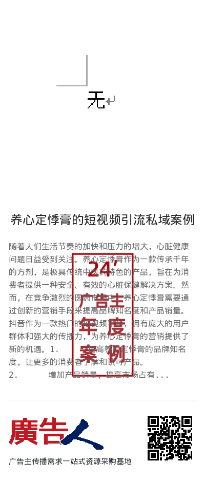 随着人们生活节奏的加快和压力的增大,心脏健康问题日益受到关注。养心定悸膏作为一款传承千年的方剂,是极具传统中医药特色的产品,旨在为消费者提供一种安全、有效的心脏保健解决方案。然而,在竞争激烈的医药市场中,养心定悸膏需要通过创新的营销手段来提高品牌知名度和产品销量。抖音作为一款热门的短视频平台,拥有庞大的用户群体和强大的传播力,为养心定悸膏的营销提供了新的机遇。