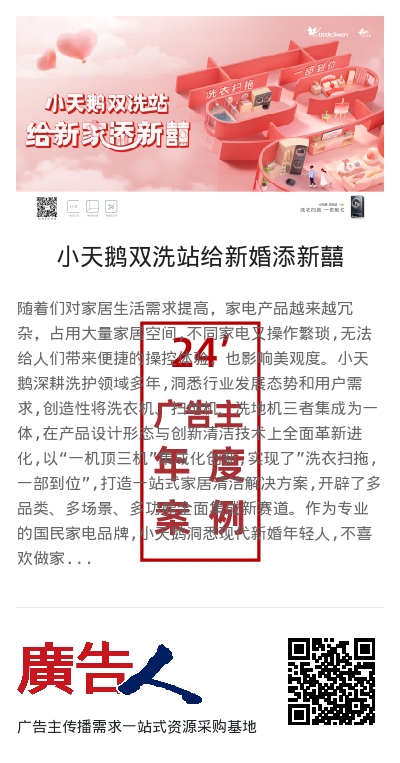 小天鹅以给新家添新囍为主题,通过新婚人群在婚礼期间注重幸福感仪式感为切入点,好好享受喜事,家务事就交给双洗站,给新人在新婚时感受到产品带来的减负体验,尽情享受婚礼和婚后生活的美好,打造系列新婚事件完成渗透。