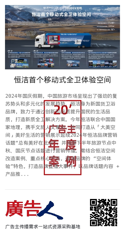 自驾日益成为体验式经济时代下一种追求自由与探索的现代旅行生活方式。洞察到自驾群体日益庞大且覆盖面广,而在自驾的过程中卫浴需求恰恰是刚需。恒洁深入痛点,从把美好空间带到用户身边的初心出发,通过发挥品牌的专业性,力图为自驾人群带来美好卫浴条件,在最美好的地方打造最火爆的话题。