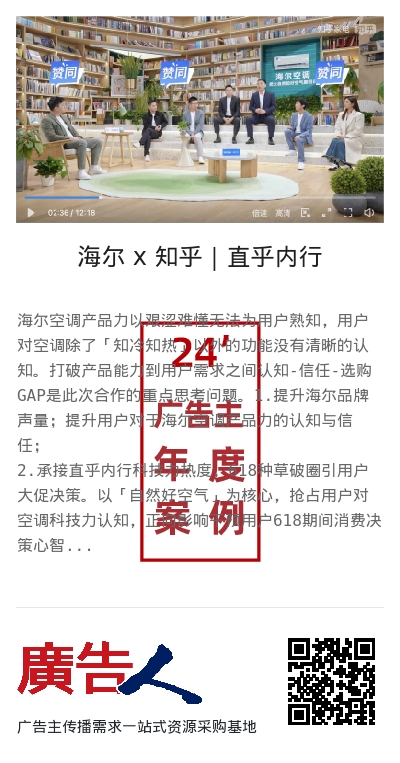 海尔除醛搜索环比上升67.86%、海尔洗空气搜索环比上升90.46%、海尔自清洁搜索环比上升90.46%,海尔空调搜索环比上升65%。合作内容「足不出户就能享受到大自然的好空气,现在的空调技术到底有多卷?」议题占据行业TOP1讨论热度,内容借势知乎官方阵地在微信、微博等平台全渠道分发跨平台影响用户。实现近1亿内容曝光,有效影响用户。随项目海尔空调618期间成功完成280W+空调带货转化交易,论证了讲透产品力对促进用户选购转化的强力价值。