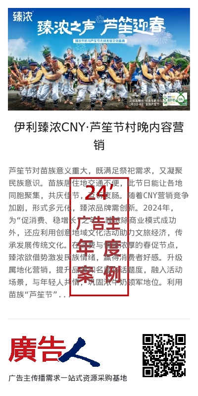 芦笙节对苗族意义重大,既满足祭祀需求,又凝聚民族意识。苗族居住地交通不便,此节日能让各地同胞聚集,共庆佳节,互诉衷肠。随着CNY营销竞争加剧,形式多元化,臻浓品牌需创新。2024年,为“促消费、稳增长”之年,臻浓除商业模式成功外,还应利用创意地域文化活动助力文旅经济,传承发展传统文化。在消费与情感浓厚的春促节点,臻浓欲借势激发民族情绪,赢得消费者好感。