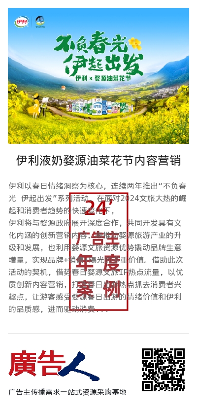伊利以春日情绪洞察为核心,连续两年推出“不负春光 伊起出发”系列活动,在面对2024文旅大热的崛起和消费者趋势的快速变化下,