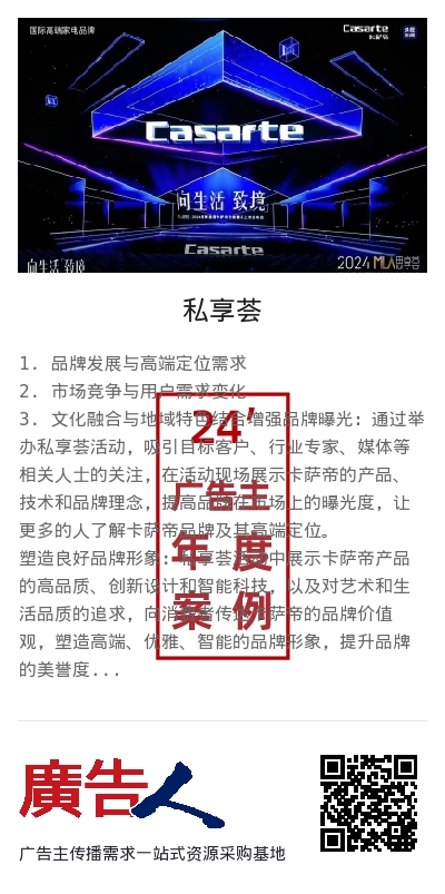 塑造良好品牌形象:私享荟活动中展示卡萨帝产品的高品质、创新设计和智能科技,以及对艺术和生活品质的追求,向消费者传达卡萨帝的品牌价值观,塑造高端、优雅、智能的品牌形象,提升品牌的美誉度和消费者的认可度。