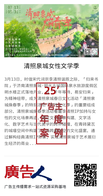 官方自媒体平台,发布内容208条,总阅读量达91.8万,净增粉丝6546人。抖音表现突出播放达54万,增粉1960,微博阅读量达12.5万。“女性文学季”主题宣传总播放量102.4万,#清照泉城女性文学季#话题热度超256万。联动6位达人实现百万级传播。获广泛媒体报道,总量超500篇。其中央级媒体发稿34条(如光明网),省级媒体124条(如齐鲁晚报、澎湃新闻),地方媒体147条,商业及资讯平台326篇,覆盖全网主流站点,形成全网曝光效应。