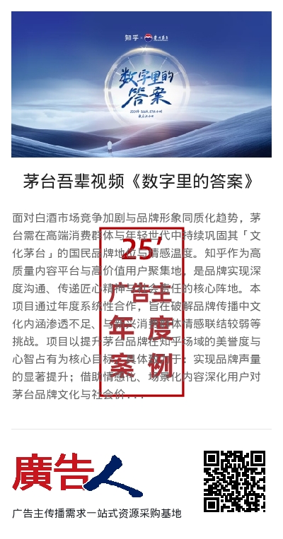 面对白酒市场竞争加剧与品牌形象同质化趋势,茅台需在高端消费群体与年轻世代中持续巩固其「文化茅台」的国民品牌地位与情感温度。知乎作为高质量内容平台与高价值用户聚集地,是品牌实现深度沟通、传递匠心精神与社会责任的核心阵地。本项目通过年度系统性合作,旨在破解品牌传播中文化内涵渗透不足、与新兴消费群体情感联结较弱等挑战。