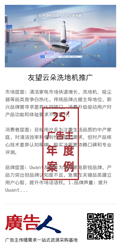 品牌层面:Uwant友望作为清洁家电新锐品牌,产品力突出但品牌认知度不足,急需在关键品类建立用户心智,提升市场话语权。