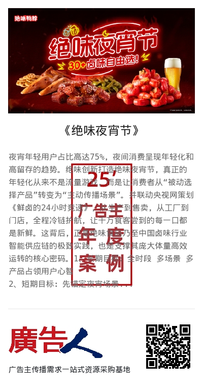 夜宵年轻用户占比高达75%,夜间消费呈现年轻化和高留存的趋势。绝味创新打造绝味夜宵节,真正的年轻化从来不是流量游戏,而是让消费者从“被动选择产品”转变为“主动传播场景”。并联动央视网策划《鲜卤的24小时竞速》,从生产到售卖,从工厂到门店,全程冷链护航,让千万食客尝到的每一口都是新鲜。这背后,正是绝味食品乃至中国卤味行业智能供应链的极致实践,也是支撑其庞大体量高效运转的核心密码。