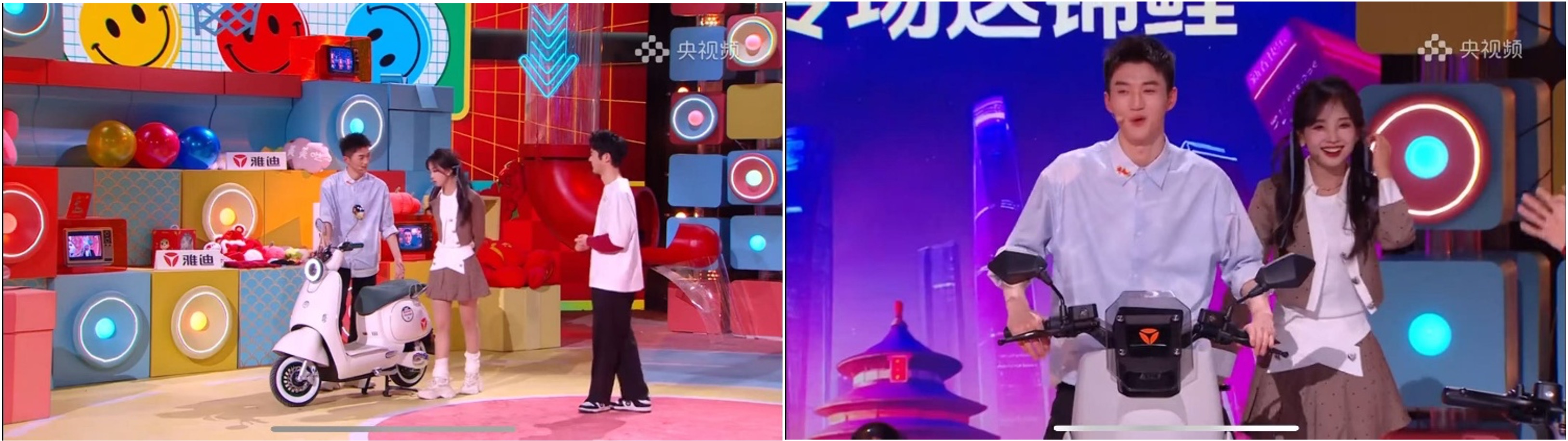 本次营销旨在借助《young在春晚》节目,提升雅迪品牌在年轻群体中的知名度与好感度,强化 “中国智造”全球形象。通过深度内容植入,传递品牌科技、绿色理念,吸引年轻消费者关注产品,刺激购买欲望,推动销量增长,同时促进品牌文化与春节文化融合,提升品牌情感附加值。