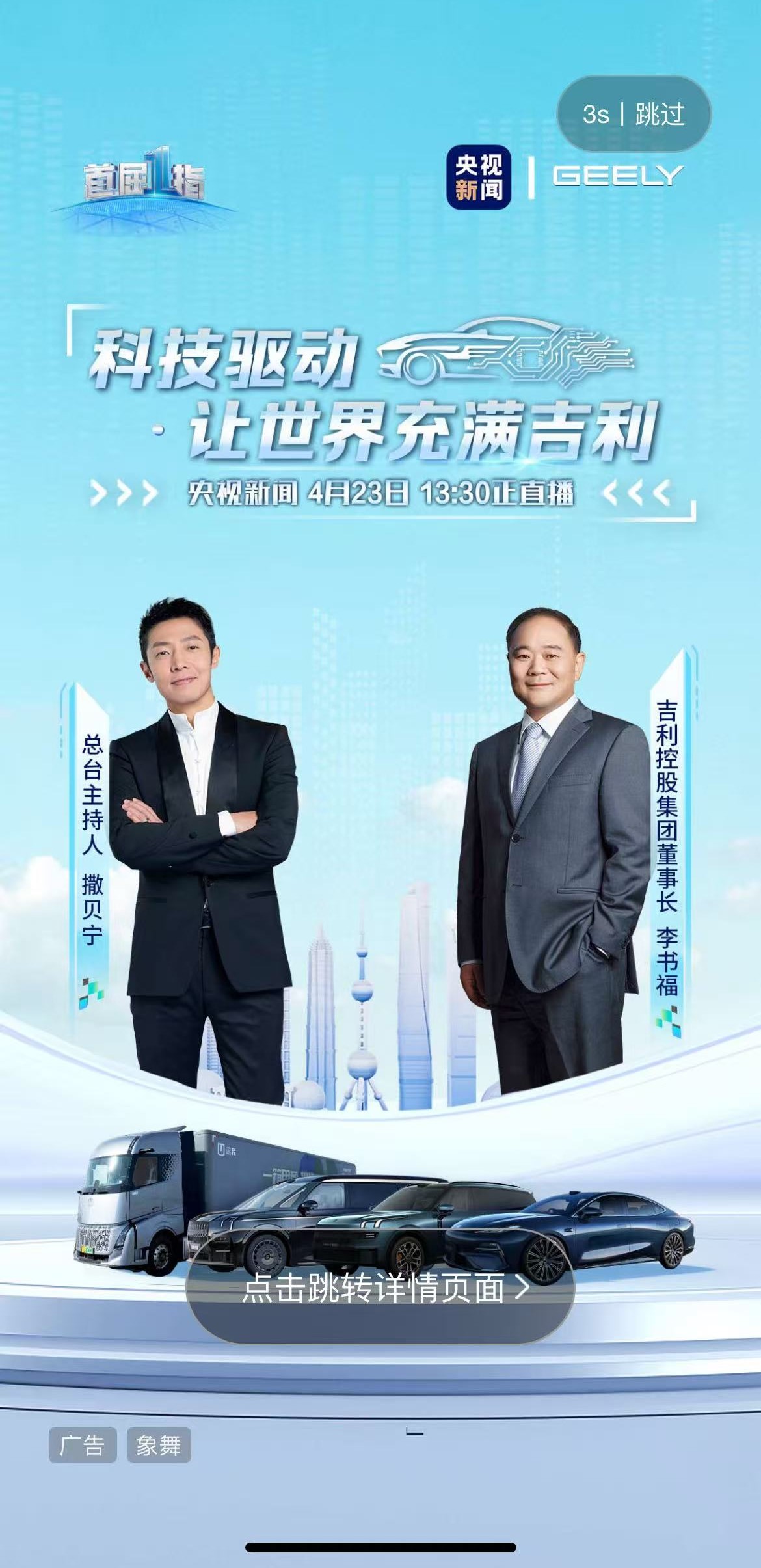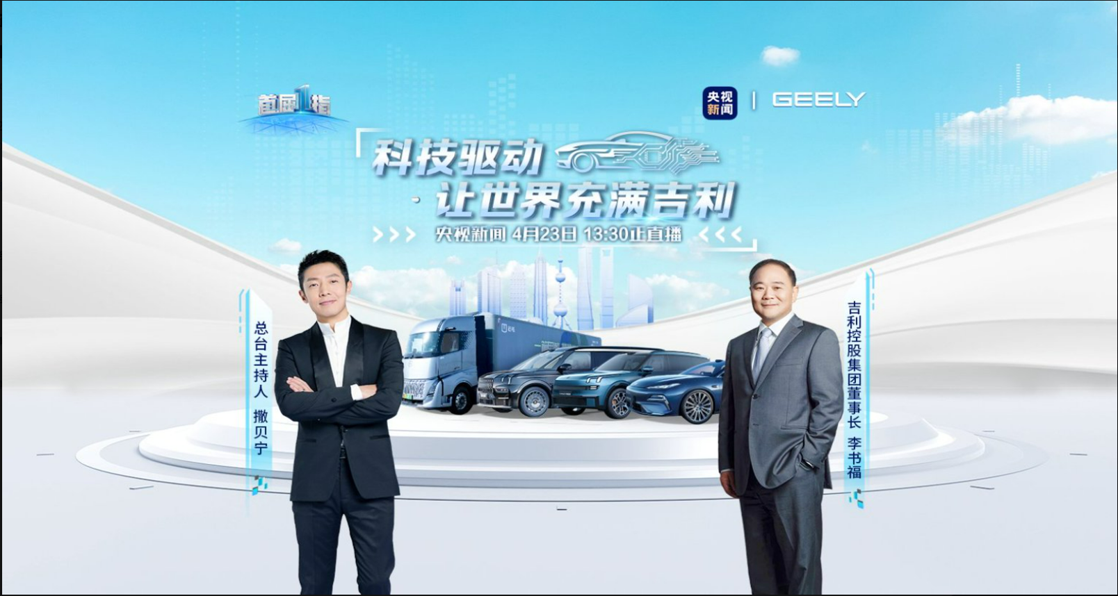 吉利控股集团首次统筹子品牌、首次联动央视新闻及总台顶流主持人撒贝宁,在上海车展期间共同打造了一场直播大事件。