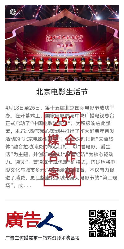 4月18日至26日,第十五届北京国际电影节成功举办。在开幕式上,国家电影局与中央广播电视总台正式启动了“中国电影消费年”。为积极响应此部署,本届北影节精心策划并推出了作为消费年首发活动的“北京电影生活节”。活动深刻把握“文商旅体”融合拉动消费的核心目标,以“看电影、爱生活”为主题,并创新性地以“票根经济”为核心驱动力。通过“一票通享全城优惠”的模式,巧妙地将电影文化与城市多元消费场景有机结合,不仅有力促进了消费,更让整座北京城化身为电影节的“第二现场”,成功实现了“全城嗨玩”的活动目标。