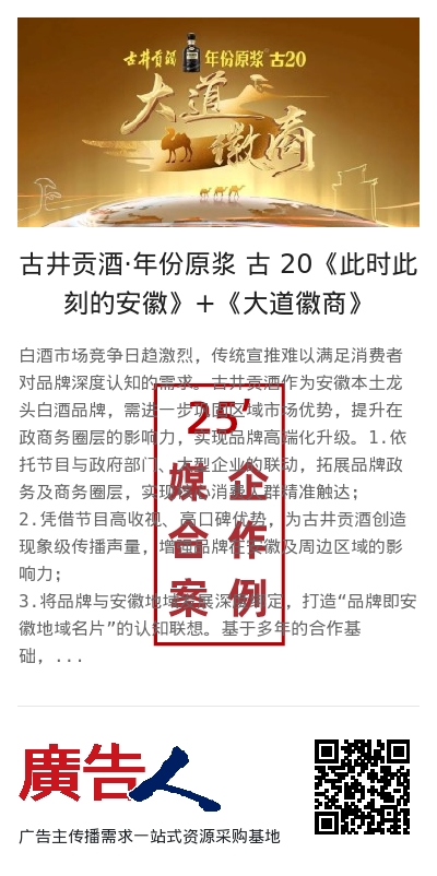 白酒市场竞争日趋激烈,传统宣推难以满足消费者对品牌深度认知的需求。古井贡酒作为安徽本土龙头白酒品牌,需进一步巩固区域市场优势,提升在政商务圈层的影响力,实现品牌高端化升级。