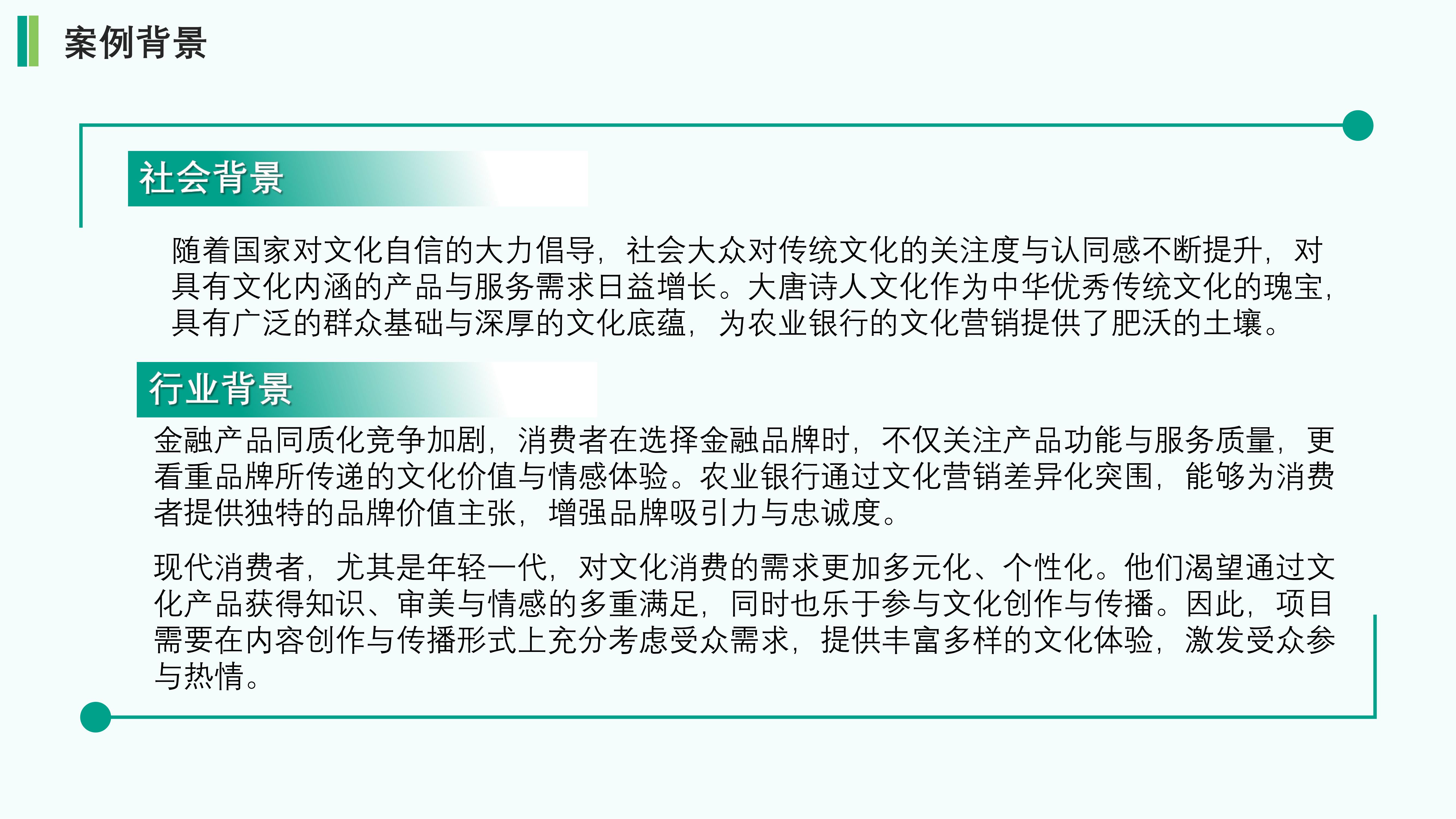 【社会背景】:随着国家对文化自信的大力倡导,社会大众对传统文化的关注度与认同感不断提升,对具有文化内涵的产品与服务需求日益增长。大唐诗人文化作为中华优秀传统文化的瑰宝,具有广泛的群众基础与深厚的文化底蕴,为农业银行的文化营销提供了肥沃的土壤。