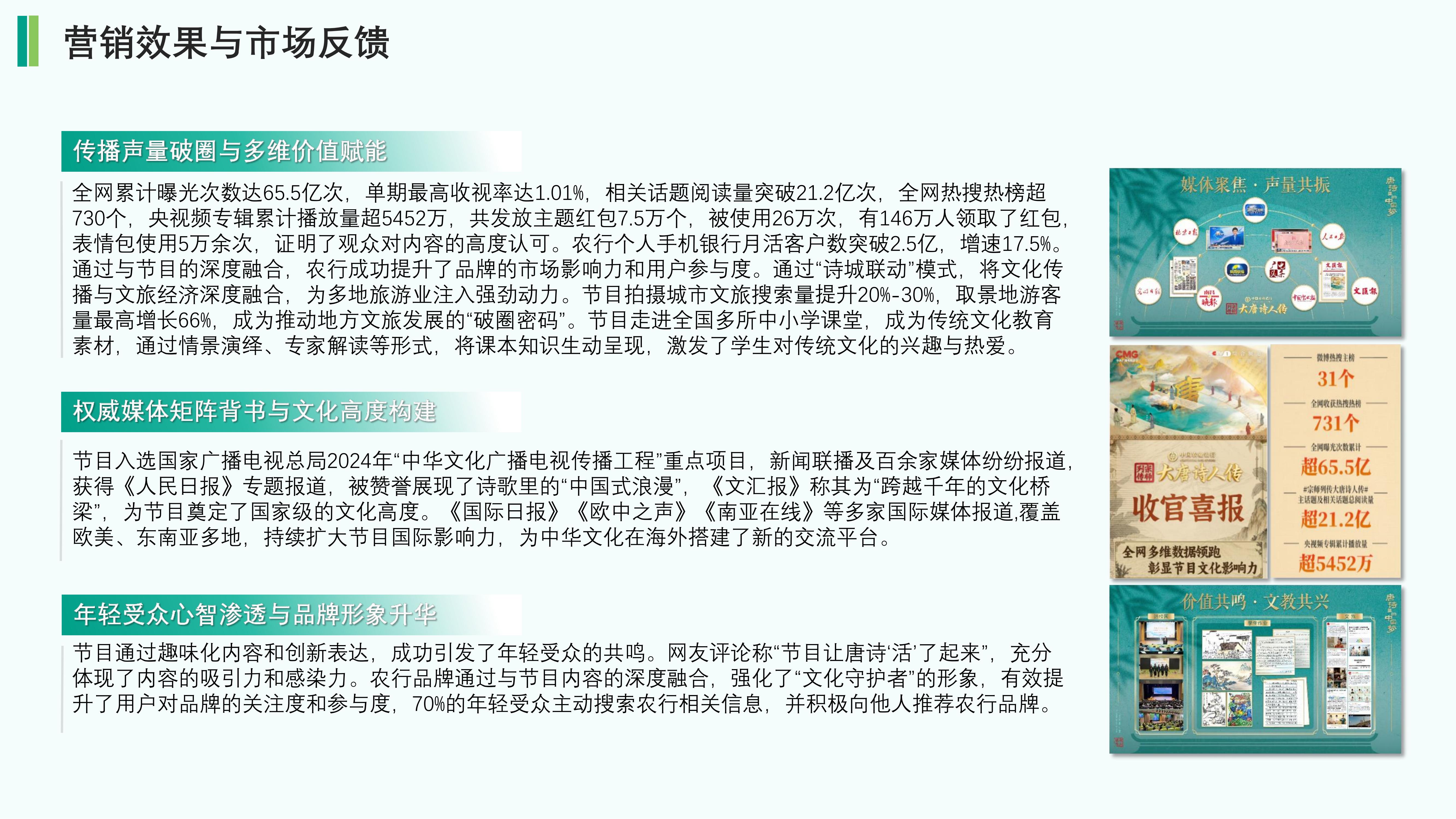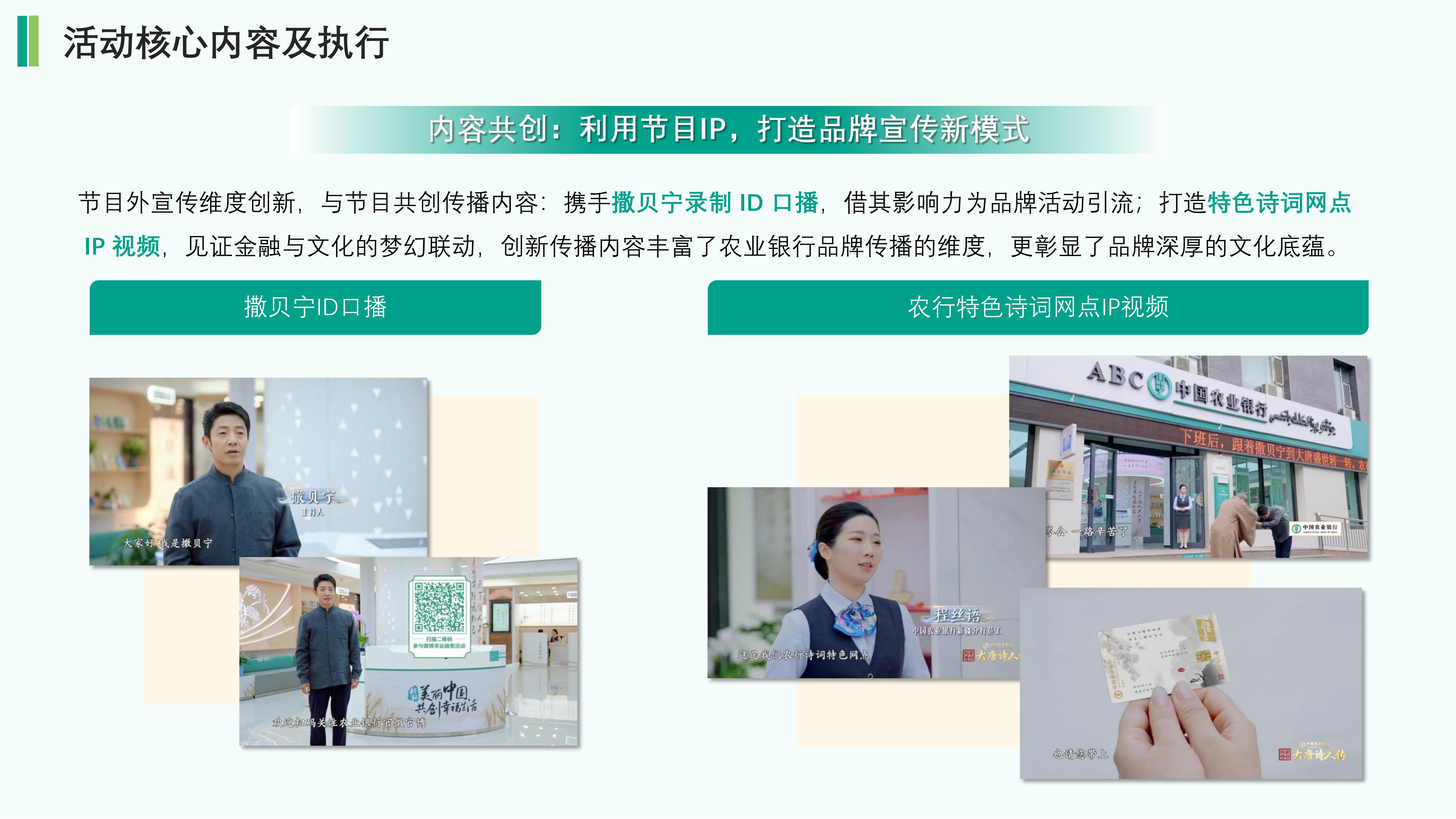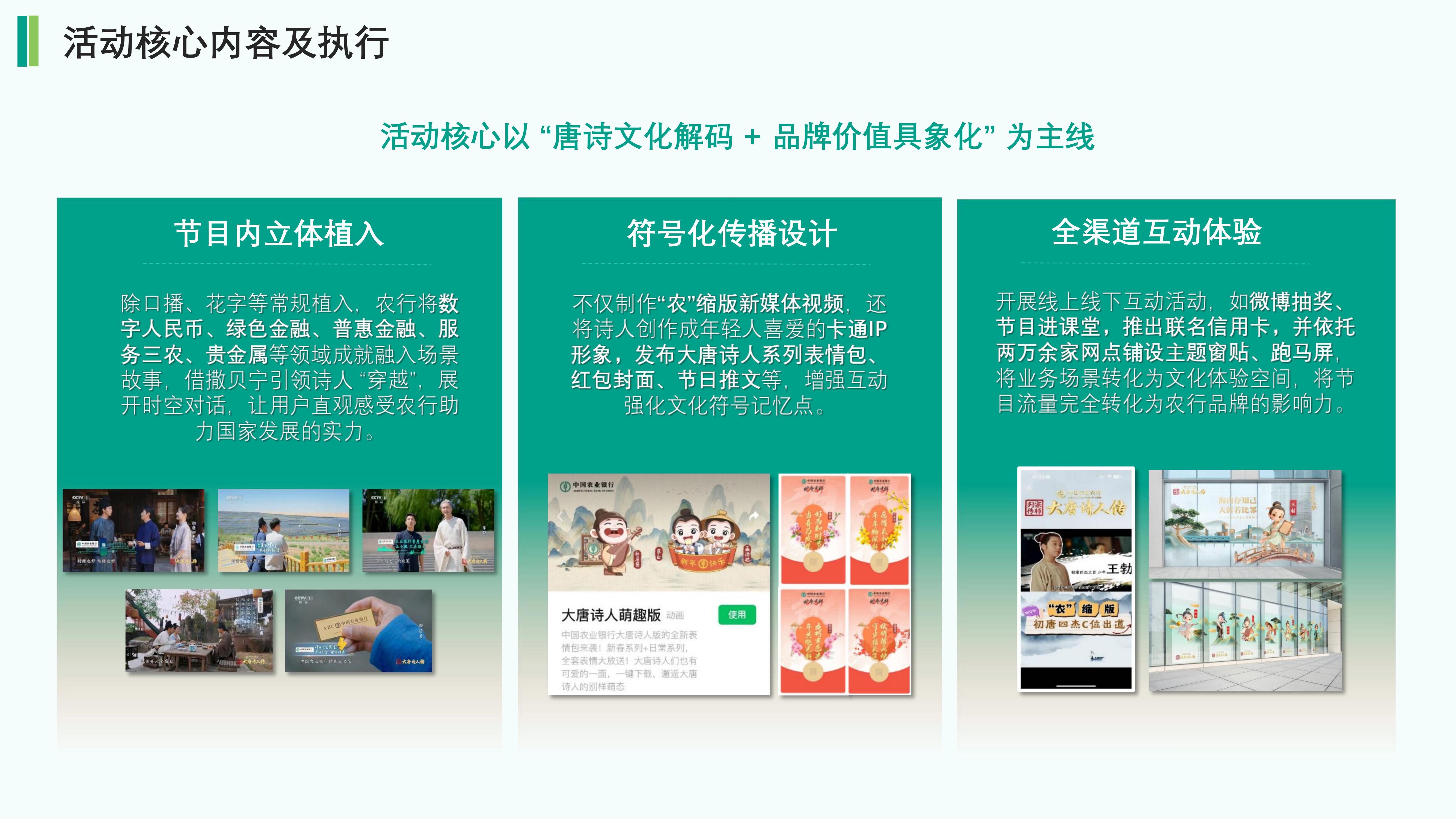 通过“诗词原文”“文以载道”“节目tips包装”等创新的板块设计,将农行形象与诗词内容相结合。