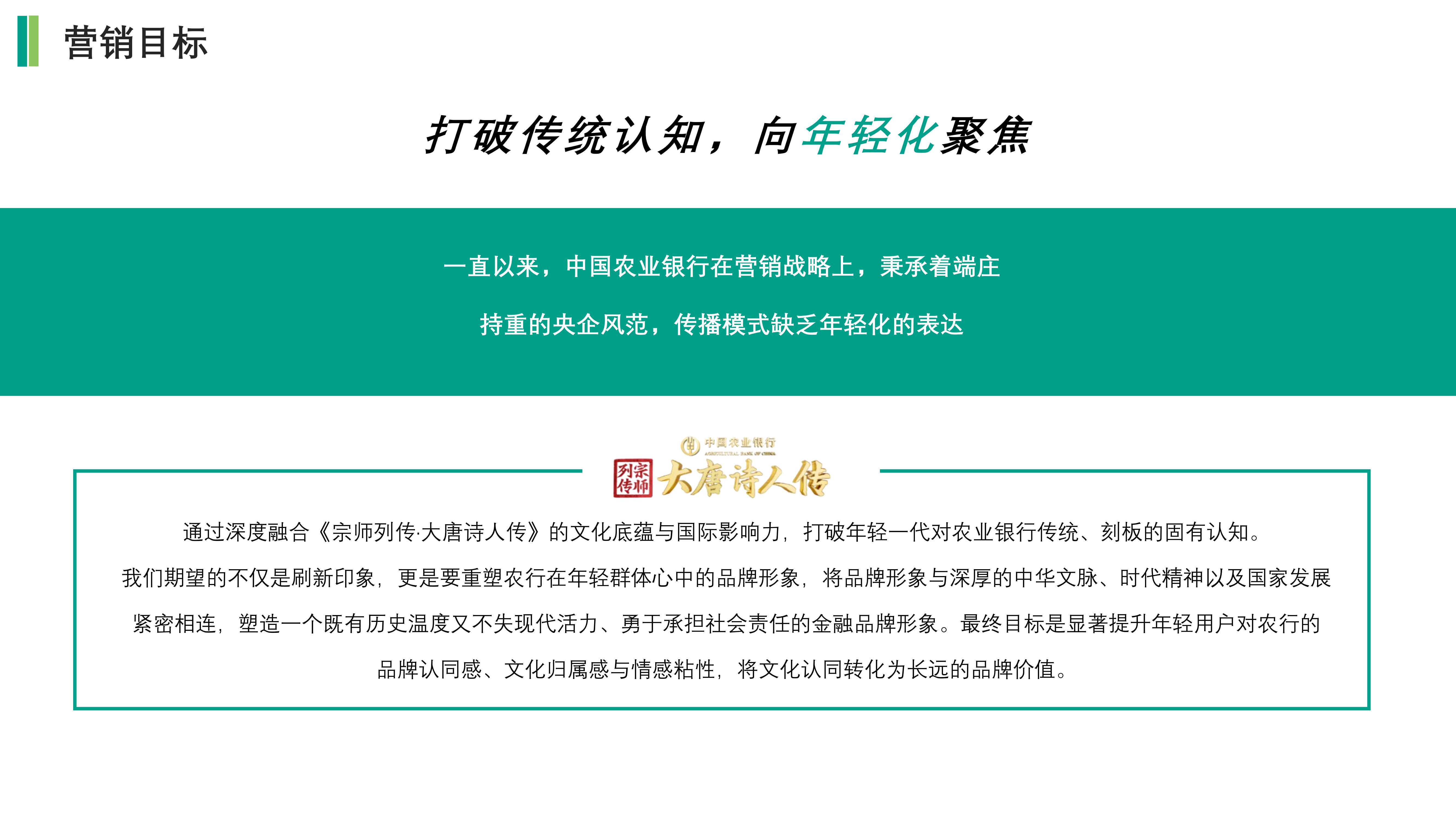 通过深度融合《宗师列传·大唐诗人传》的文化底蕴与国际影响力,打破年轻一代对农业银行传统、刻板的固有认知。