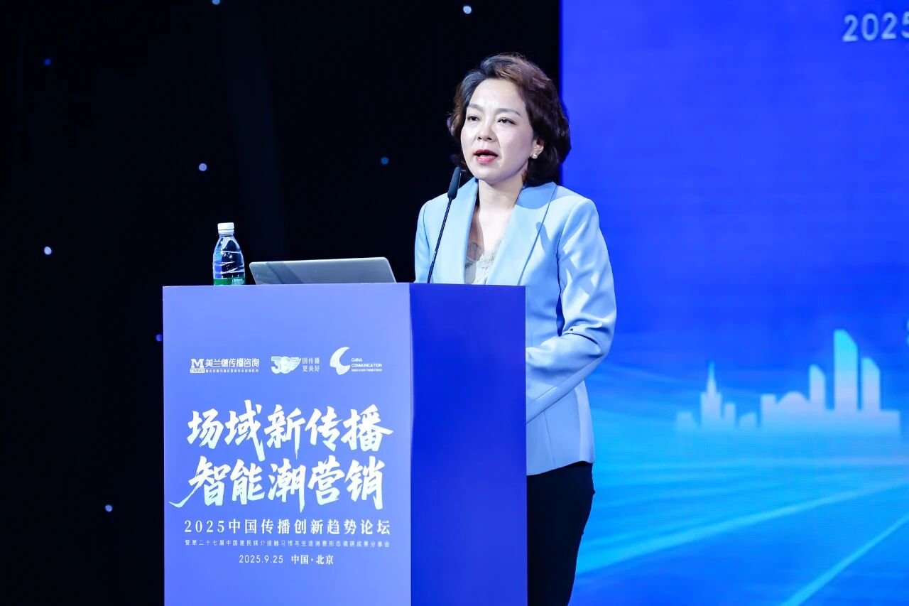 峰会现场,美兰德传播咨询董事副总经理金桂娟女士根据第二十七届中国居民媒介接触习惯与生活消费形态数据,发布了题为《新质消费与心智传播——2025年品牌营销创新趋势洞察》报告,分享美兰德公司关于2025年居民消费及品牌营销传播创新趋势的洞察成果。