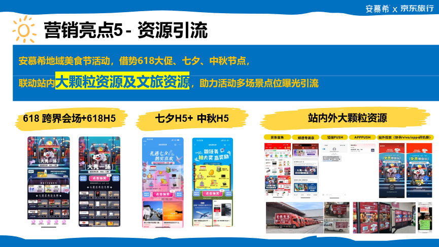 5、资源升级:借势618大促&暑期出游&中秋国庆三大节点热度及站内外资源为活动引流造势