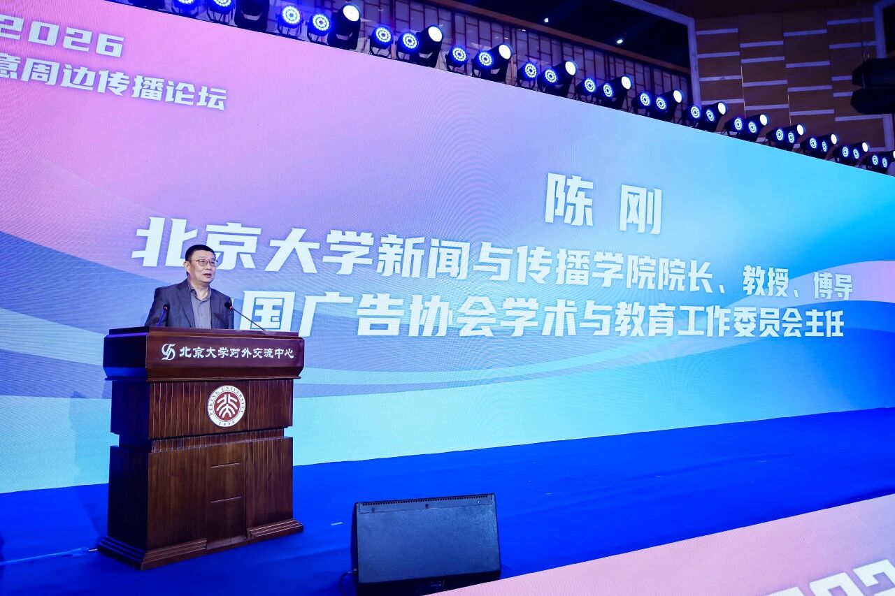 2026年4月15日,2026青年创意周边传播论坛在北京大学圆满举办。本次活动由北京大学周边传播研究中心、中国大学生广告艺术节学院奖组委会联合主办,贵州茅台酱香酒营销有限公司合作开展。活动现场,北京大学新闻与传播学院院长、教授、博导、中国广告协会学术与教育工作委员会主任陈刚,北京大学新闻与传播学院教授、博士生导师、北京大学周边传播研究中心主任陆地,贵州茅台酒股份有限公司党委副书记、工会主席游亚林,‌贵州茅台酱香酒营销有限公司党委副书记、总经理陈宗强,中国广告协会副会长、广告人文化集团董事长李文龙,中国产学研合作促进会创意与产业协同创新平台秘书长、创意星球董事长穆虹以及来自北京大学、中国人民大学、中国传媒大学、中央民族大学等高校的师生齐聚一堂,共话青年创意与周边传播的路径与方式。