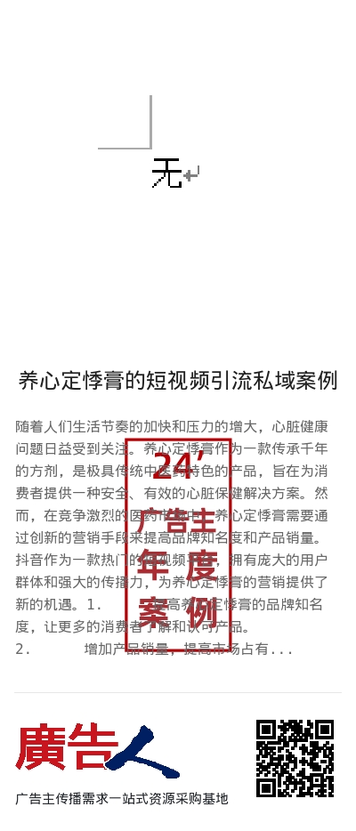随着人们生活节奏的加快和压力的增大,心脏健康问题日益受到关注。养心定悸膏作为一款传承千年的方剂,是极具传统中医药特色的产品,旨在为消费者提供一种安全、有效的心脏保健解决方案。然而,在竞争激烈的医药市场中,养心定悸膏需要通过创新的营销手段来提高品牌知名度和产品销量。抖音作为一款热门的短视频平台,拥有庞大的用户群体和强大的传播力,为养心定悸膏的营销提供了新的机遇。