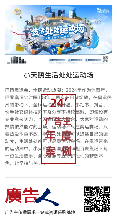 运动场不只在奥运赛场,只要热爱本色不改,平凡人处处都可以追逐自己的运动梦,生活处处都可以是奥运分会场,在奥运带来的运动潮中,小天鹅作为国货品牌担当聚焦场下每一位生活选手,全心全意专业守护他们的梦想本色,让坚持与热爱永不褪色,借助全民运动热潮守护运动健康,让大家看见小天在除菌、去汗渍、烘干、洗护方面的出色表现