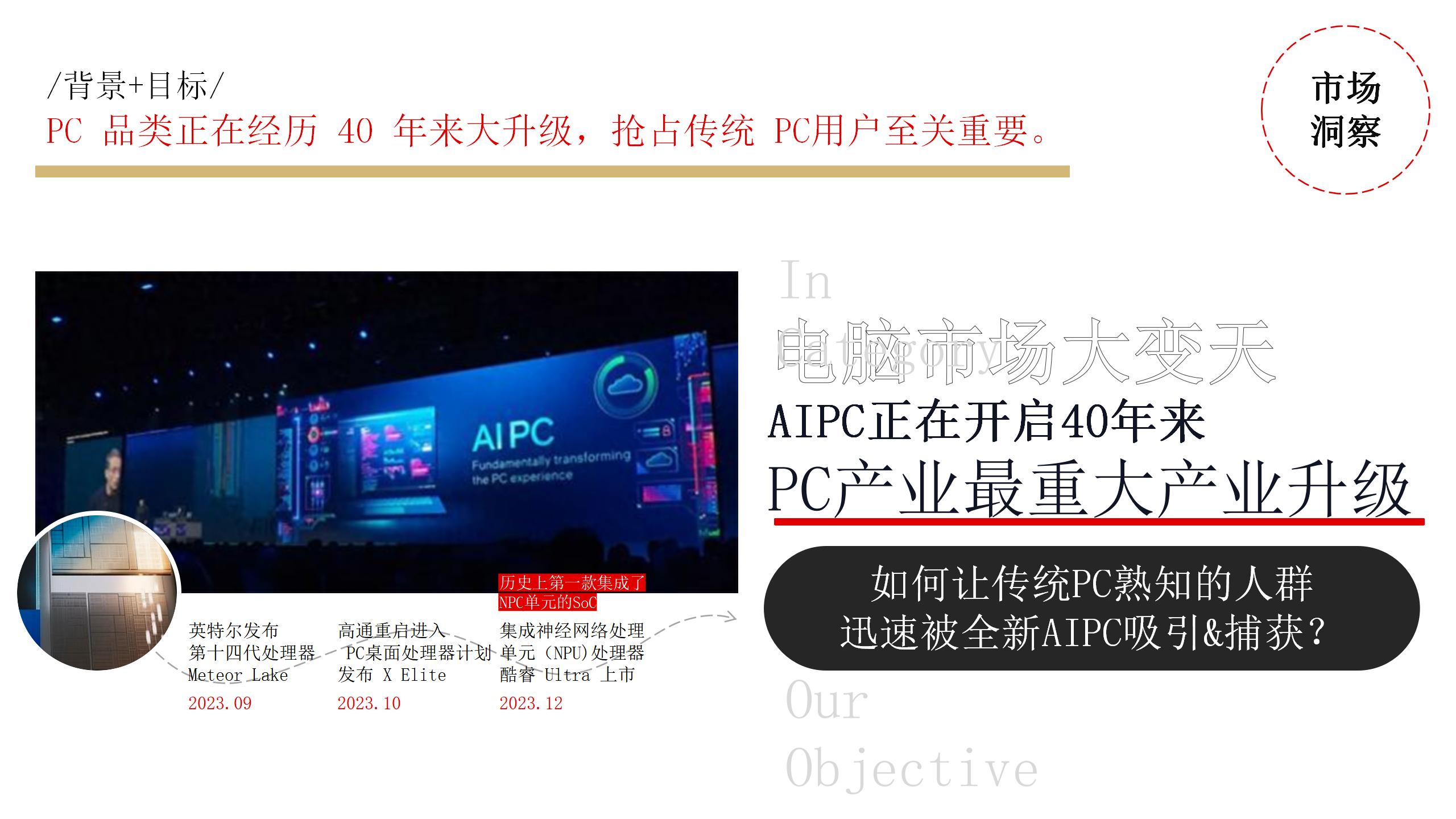 亮点 3>借助AIPC 产出脚本,最大可能还原更多打工人的真实诉求:借助 AIPC 的强大搜索以及算力,通过学习打工人在社交媒体上的众众行为及观点,产出贴合更多打工人的脚本设计,以此来尽可能多地唤醒打工人心中的“痛点”与痒点,并巧妙地融合产品卖点做集中展示。