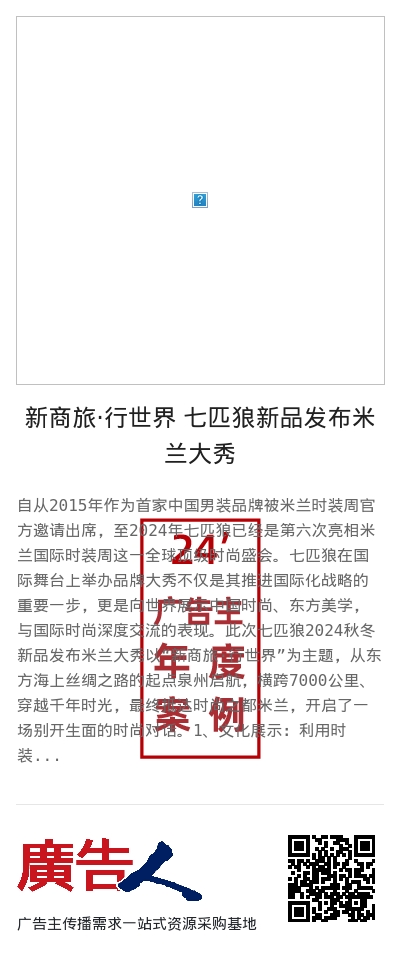 1、主题聚焦:七匹狼2024秋冬新品发布米兰大秀以“新商旅 行世界”为主题,通过一系列融合东方美学与现代设计元素的服装展示,强调品牌的国际化视野和文化自信。
