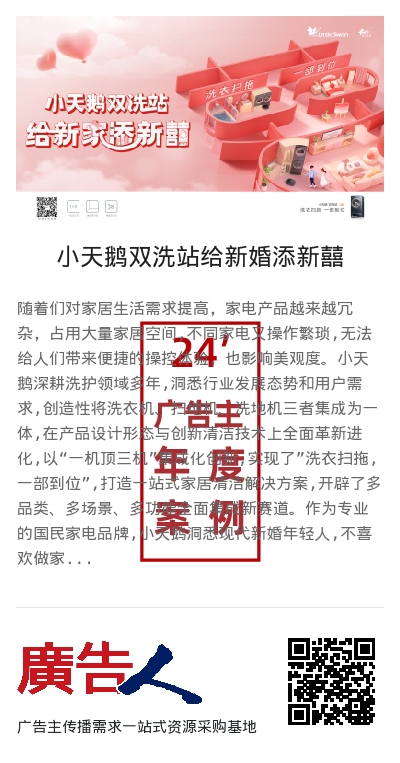小天鹅以给新家添新囍为主题,通过新婚人群在婚礼期间注重幸福感仪式感为切入点,好好享受喜事,家务事就交给双洗站,给新人在新婚时感受到产品带来的减负体验,尽情享受婚礼和婚后生活的美好,打造系列新婚事件完成渗透。