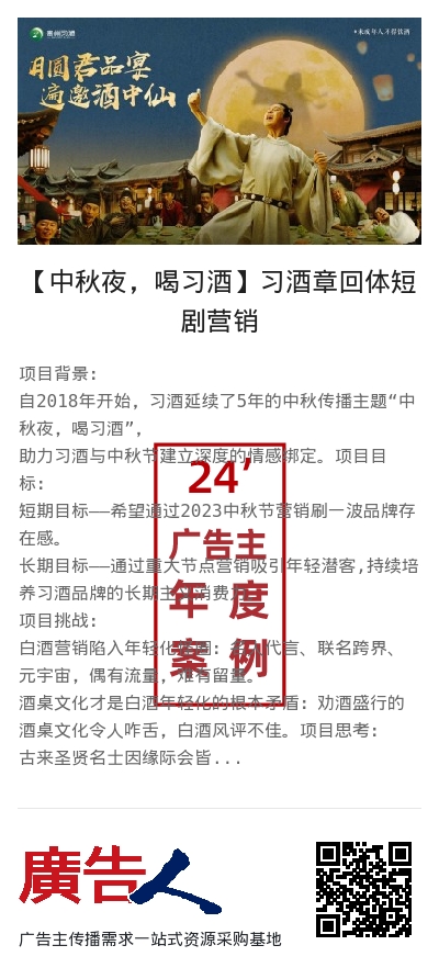 自2018年开始,习酒延续了5年的中秋传播主题“中秋夜,喝习酒”,