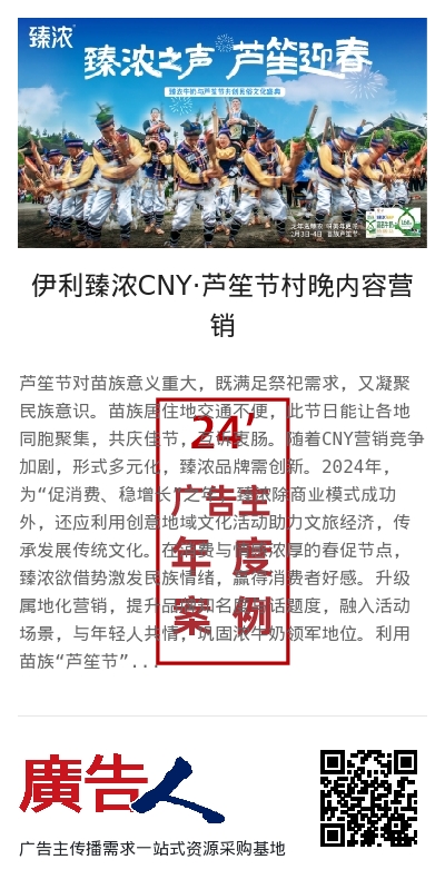 芦笙节对苗族意义重大,既满足祭祀需求,又凝聚民族意识。苗族居住地交通不便,此节日能让各地同胞聚集,共庆佳节,互诉衷肠。随着CNY营销竞争加剧,形式多元化,臻浓品牌需创新。2024年,为“促消费、稳增长”之年,臻浓除商业模式成功外,还应利用创意地域文化活动助力文旅经济,传承发展传统文化。在消费与情感浓厚的春促节点,臻浓欲借势激发民族情绪,赢得消费者好感。