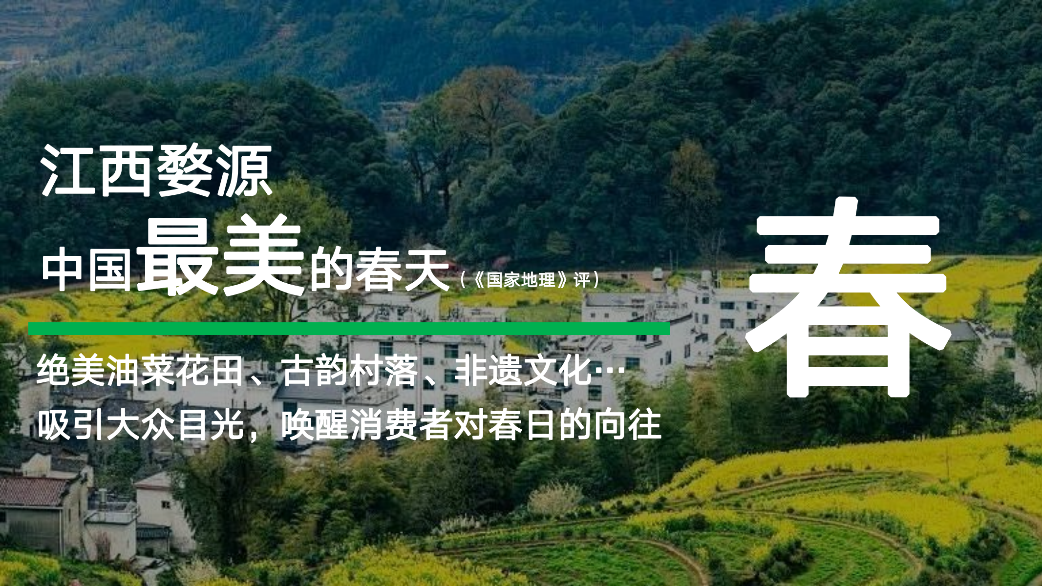 02 携手婺源文旅:以油菜花节为平台,通过万人共绘春天等活动,打造观光、休闲、娱乐于一体的文旅盛宴。