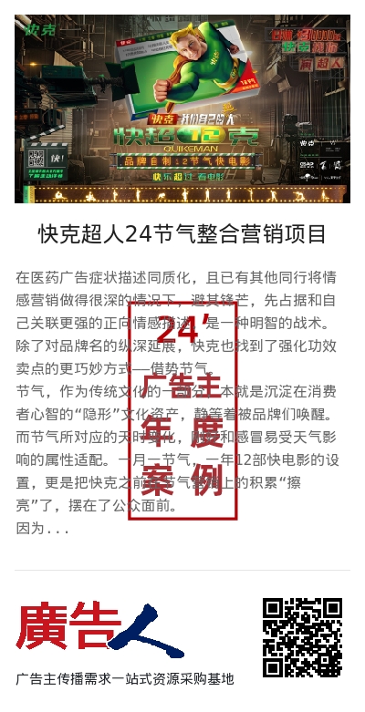 一月一节气,一年12部快电影的设置,更是把快克之前在节气营销上的积累“擦亮”了,摆在了公众面前。