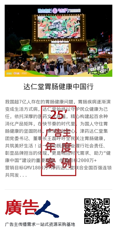 达仁堂胃肠健康中国行联动全国百强连锁,掀起一场跨越10省20城覆盖超2000万人的健康科普盛宴,是一场集公益科普初心、场景化教育、年轻化表达、战略化化合作为一体的营销实践,让百年老字号品牌焕发崭新活力,更为医药行业提供了可复制、可借鉴的处方药品牌营销创新样本。