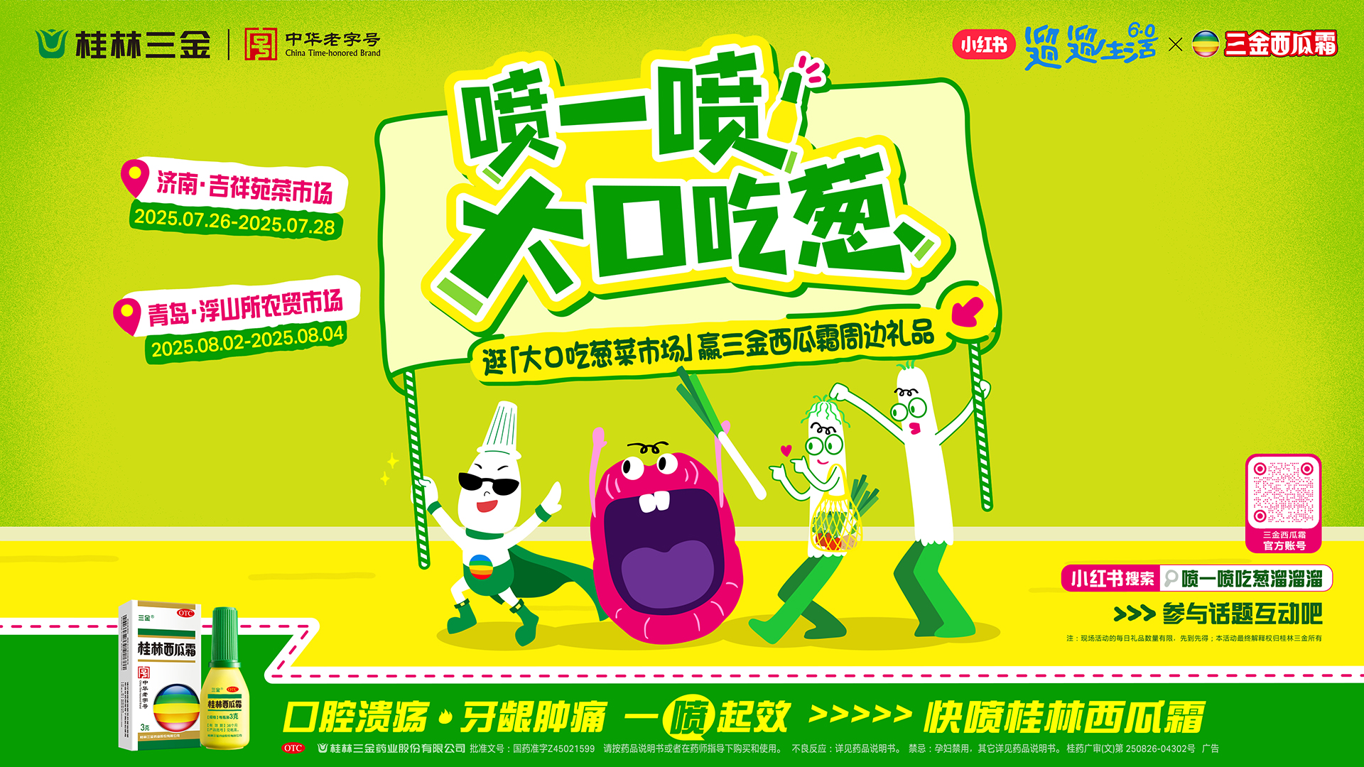 在山东这一桂林西瓜霜产品销售的重点省份,以菜市场活动深入与消费者互动,配合线上线下媒体传播资源,通过网红打卡、话题炒作、IP合作等手段,打造一场落地山东,辐射全国的传播大事件,提升产品认知、拉升品牌好感度,助力核心区域的产品销售。