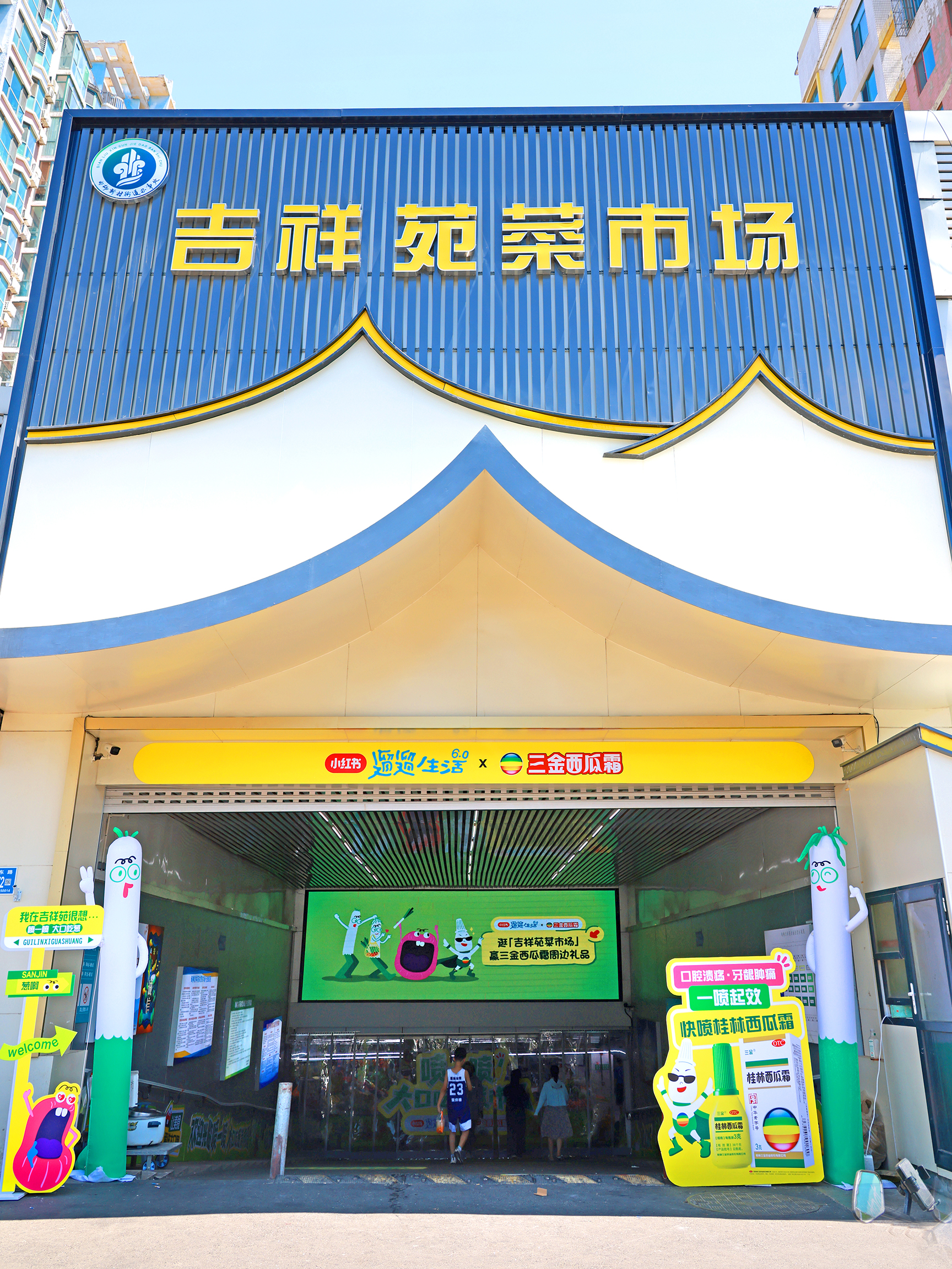 全国各地皆有独特的美食文化,但当人们遭遇口腔溃疡、牙龈肿痛时,即便偏爱 “大口吃”,也会明显感觉 “饭张力” 下降 —— 而桂林西瓜霜恰好能精准解决这一消费者痛点。因此,品牌选择在菜市场这一承载地域饮食文化的核心场景,以创意形式打造充满烟火气的网红打卡地,并在饮食场景中,向消费者传递 “口腔溃疡、牙龈肿痛,桂林西瓜霜一喷起效” 的核心信息,深化心智认知。