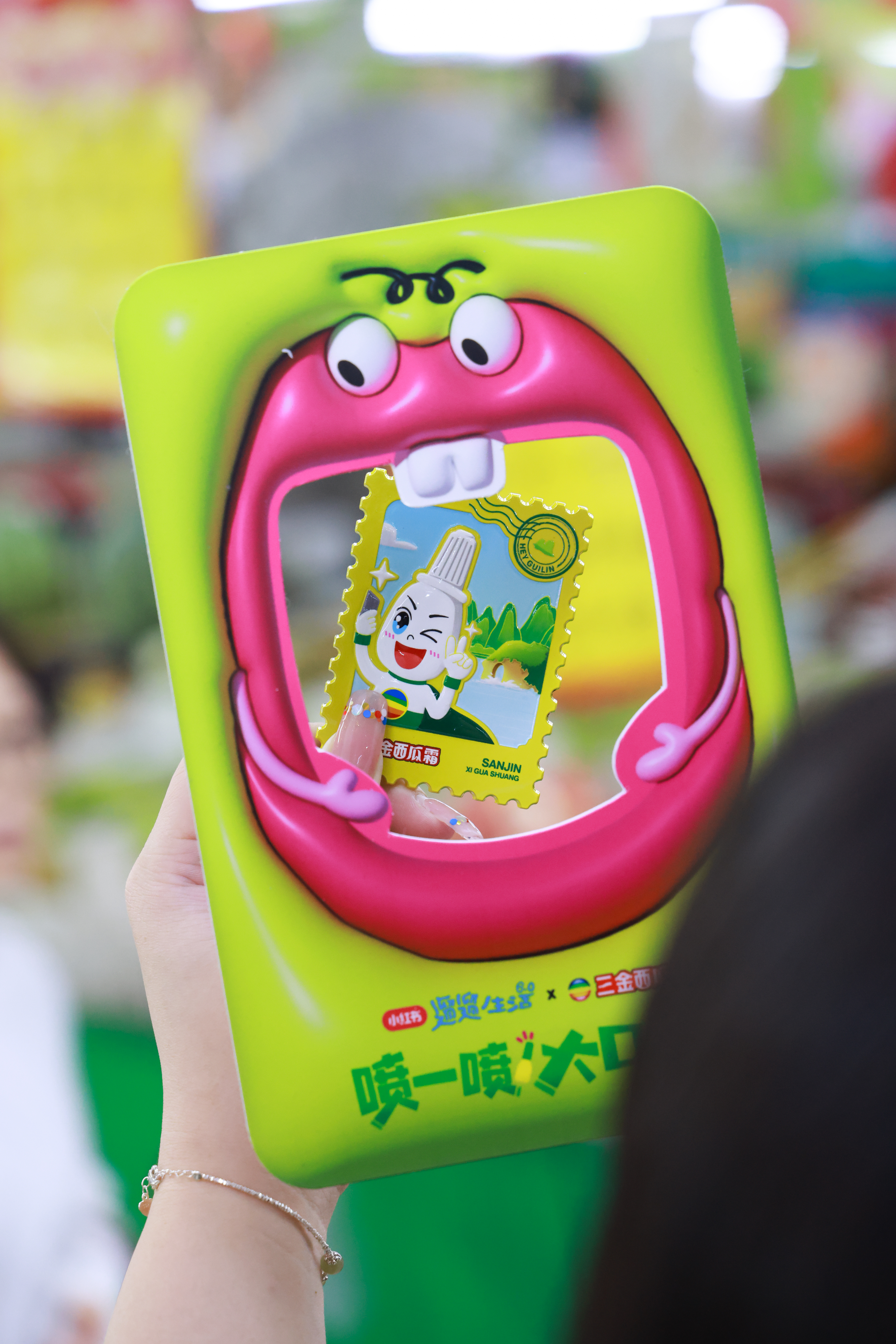 线下以济南、青岛双城菜市场打卡活动为核心,以山东“大葱形象”结合品牌IP“喷仔”为核心视觉形象,通过创意装饰、互动游戏、定制周边等吸引当地消费者打卡传播。