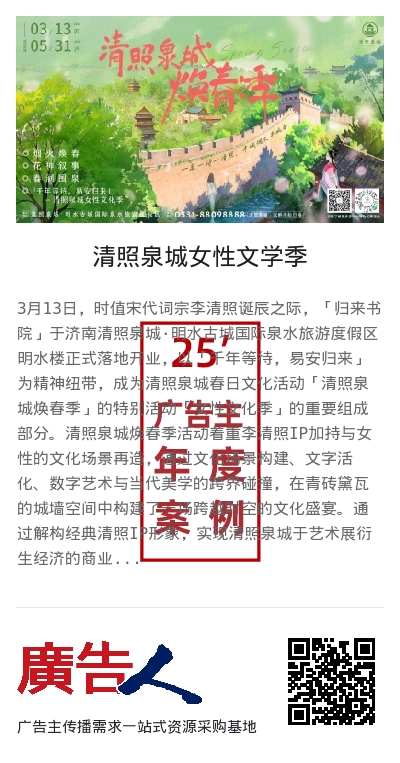 官方自媒体平台,发布内容208条,总阅读量达91.8万,净增粉丝6546人。抖音表现突出播放达54万,增粉1960,微博阅读量达12.5万。“女性文学季”主题宣传总播放量102.4万,#清照泉城女性文学季#话题热度超256万。联动6位达人实现百万级传播。获广泛媒体报道,总量超500篇。其中央级媒体发稿34条(如光明网),省级媒体124条(如齐鲁晚报、澎湃新闻),地方媒体147条,商业及资讯平台326篇,覆盖全网主流站点,形成全网曝光效应。