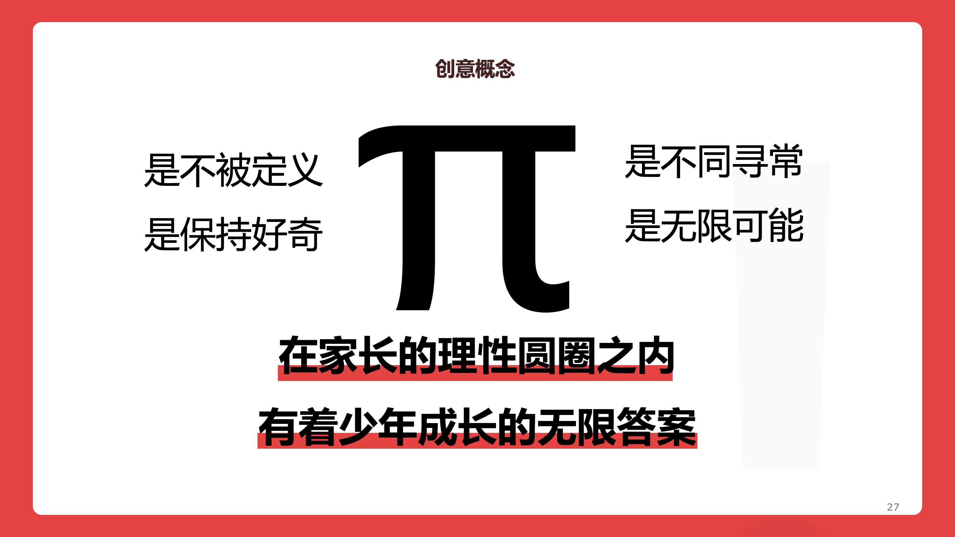 1、社交破圈:性格测试H5病毒传播,联动母婴、教育、生活方式KOL矩阵,微博话题#少年π自成一派#引爆讨论;