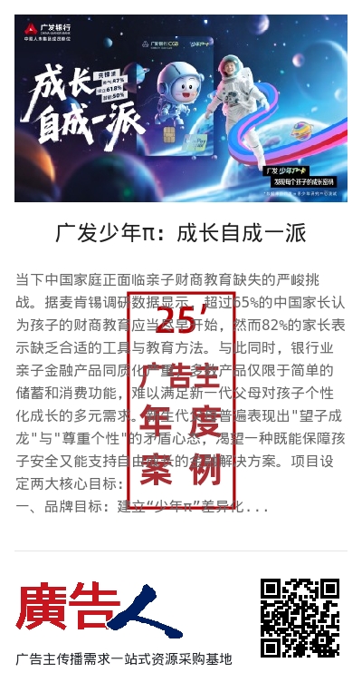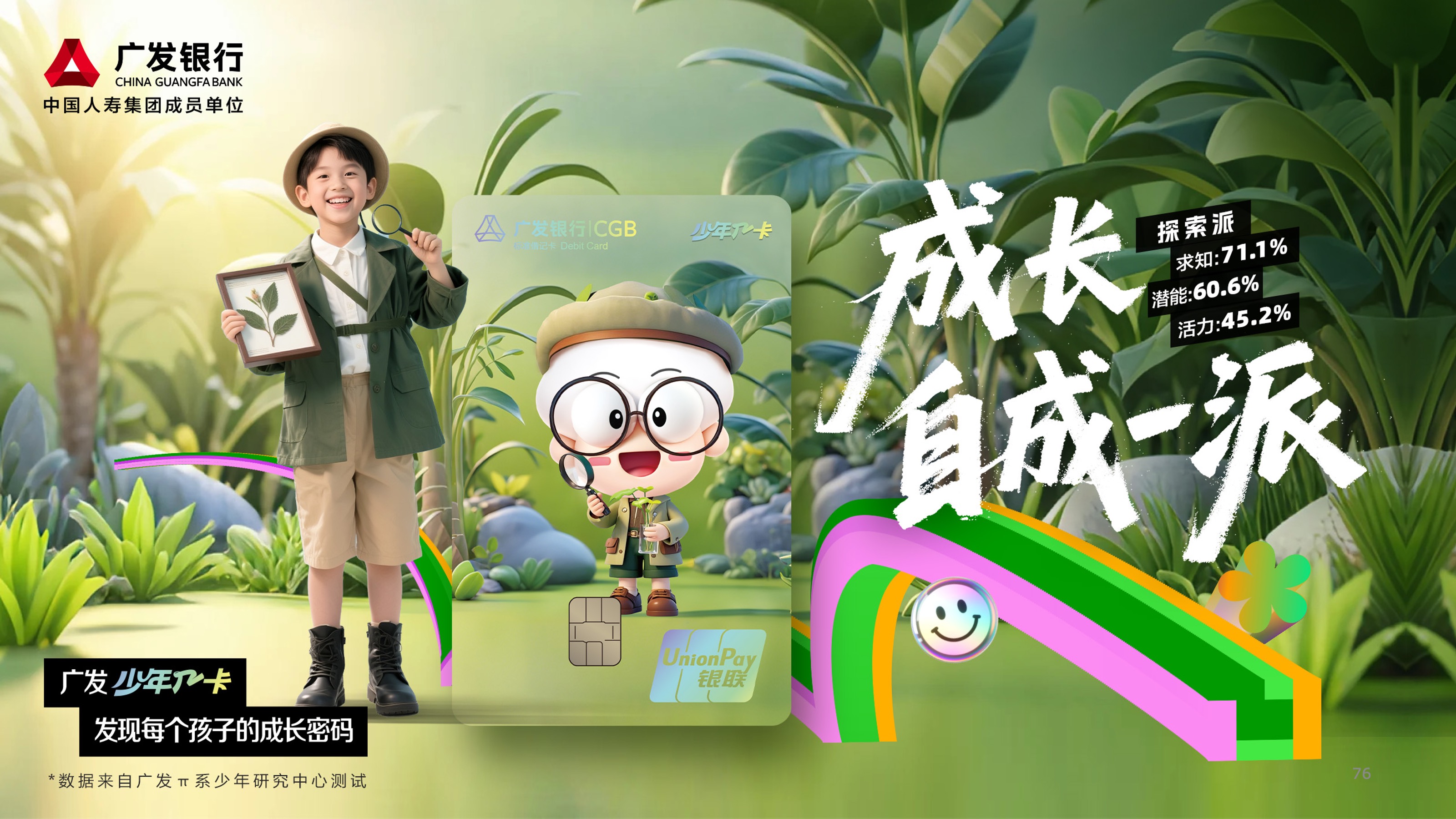 每个孩子都是独一无二的π——无限延伸,永不重复。广发银行少年π突破传统金融教育的单一模式,以'成长自成一派'为核心主张,创新构建四派人格体系,让财商教育回归孩子本真。我们不是金钱的管控者,而是成长的陪伴者;不追求标准答案,而尊重个性表达。通过将抽象金融概念转化为生动有趣的探索旅程,让孩子在自我认知中建立健康金钱观,在个性化体验中培养财商思维。少年π相信:真正的财商教育,是引导孩子发现自我价值,在理财中学会生活,在成长中绽放独特光芒。