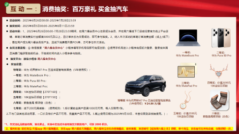 活动内容:1、2025年6月26日00:00-7月28日23:59期间,在周六福会员中心注册成为会员,并在周六福线下门店或任意官方线上平台店铺,单笔订单消费实付金额满3000元及以上,且订单状态为交易成功,即可参与抽奖。2、纳入本次活动的单笔订单消费金额(线上/线下),需在用户成为周六福会员后产生,且线下消费需开具POS单,方可参与本次活动。
