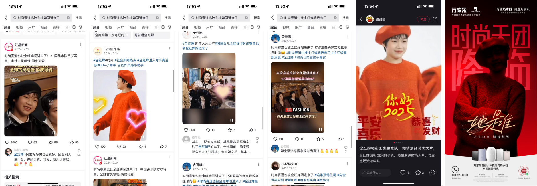 全红婵等自发分享拍摄花絮,助力万家乐破圈,阅读量破亿,互动量超100万+