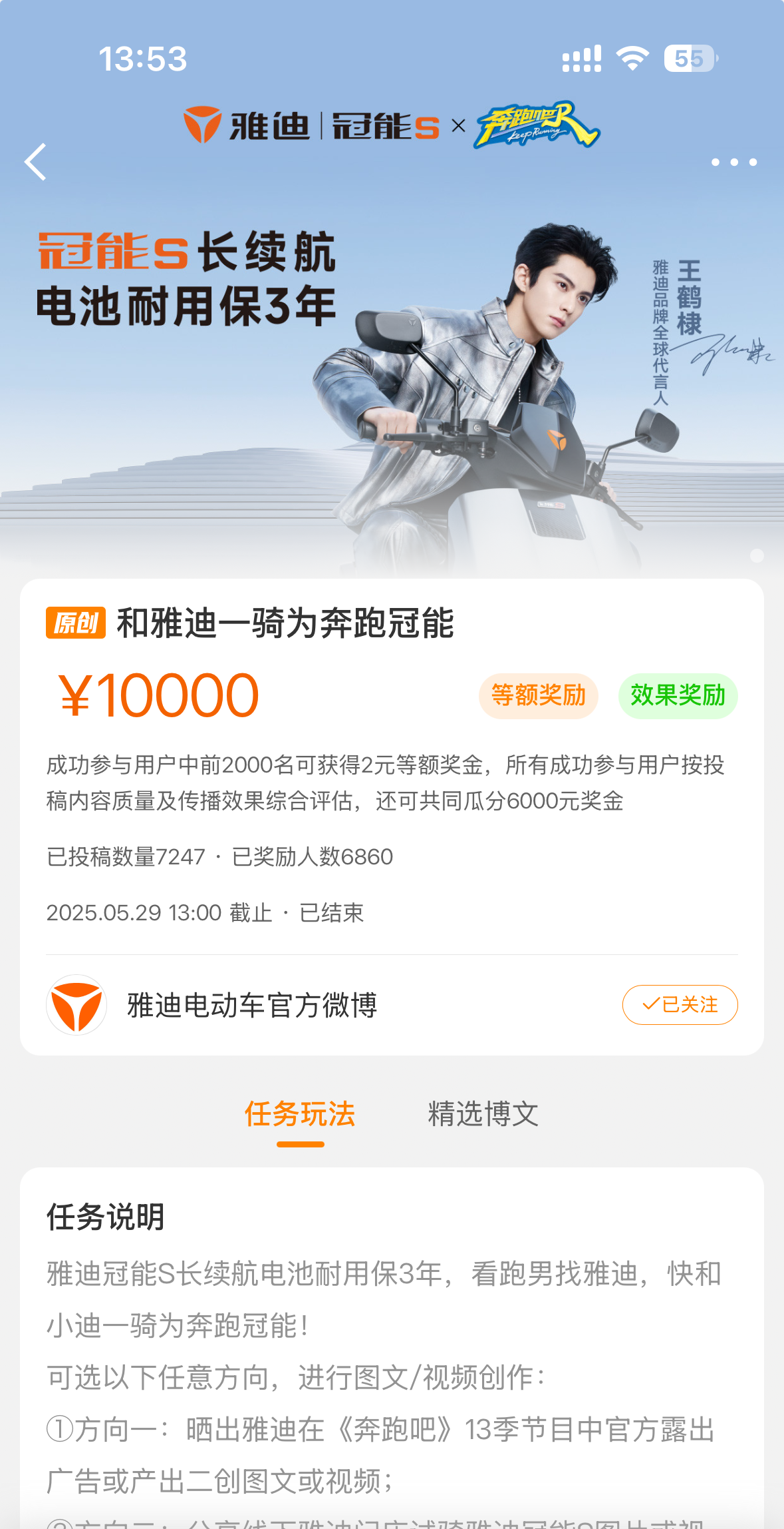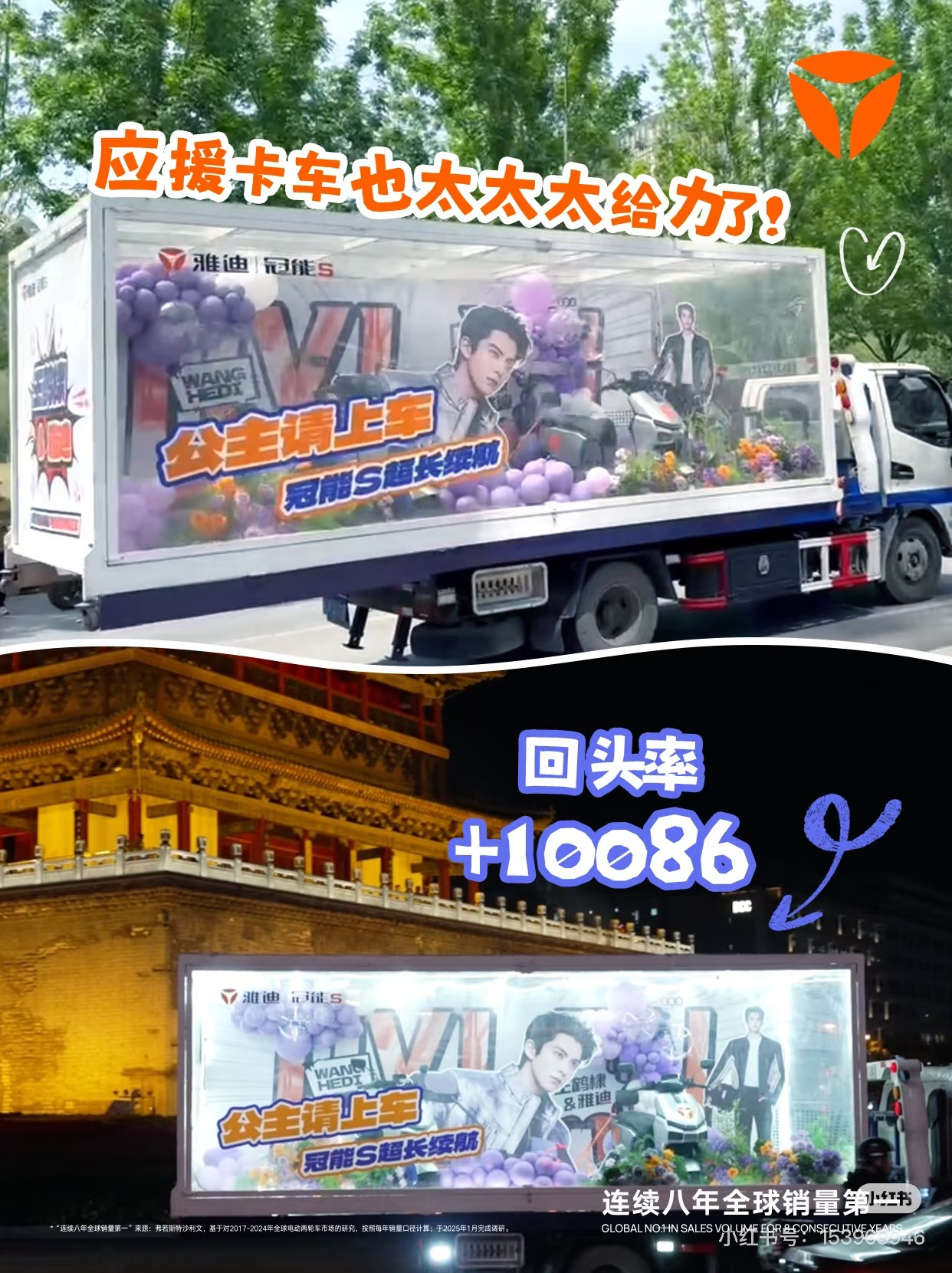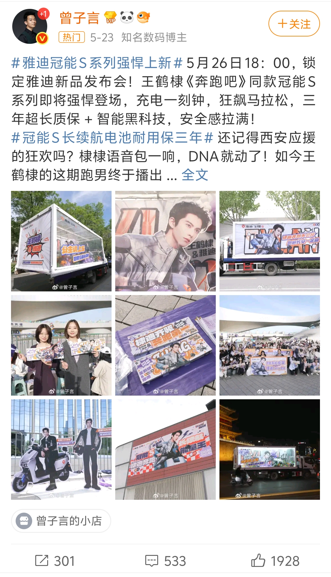2、定制互动内容:开发跑男团专属语音包,如启动雅迪冠能S时播放王鹤棣“我是王鹤棣,骑上雅迪冠能S一起奔跑吧!”语音,成为全网焦点。