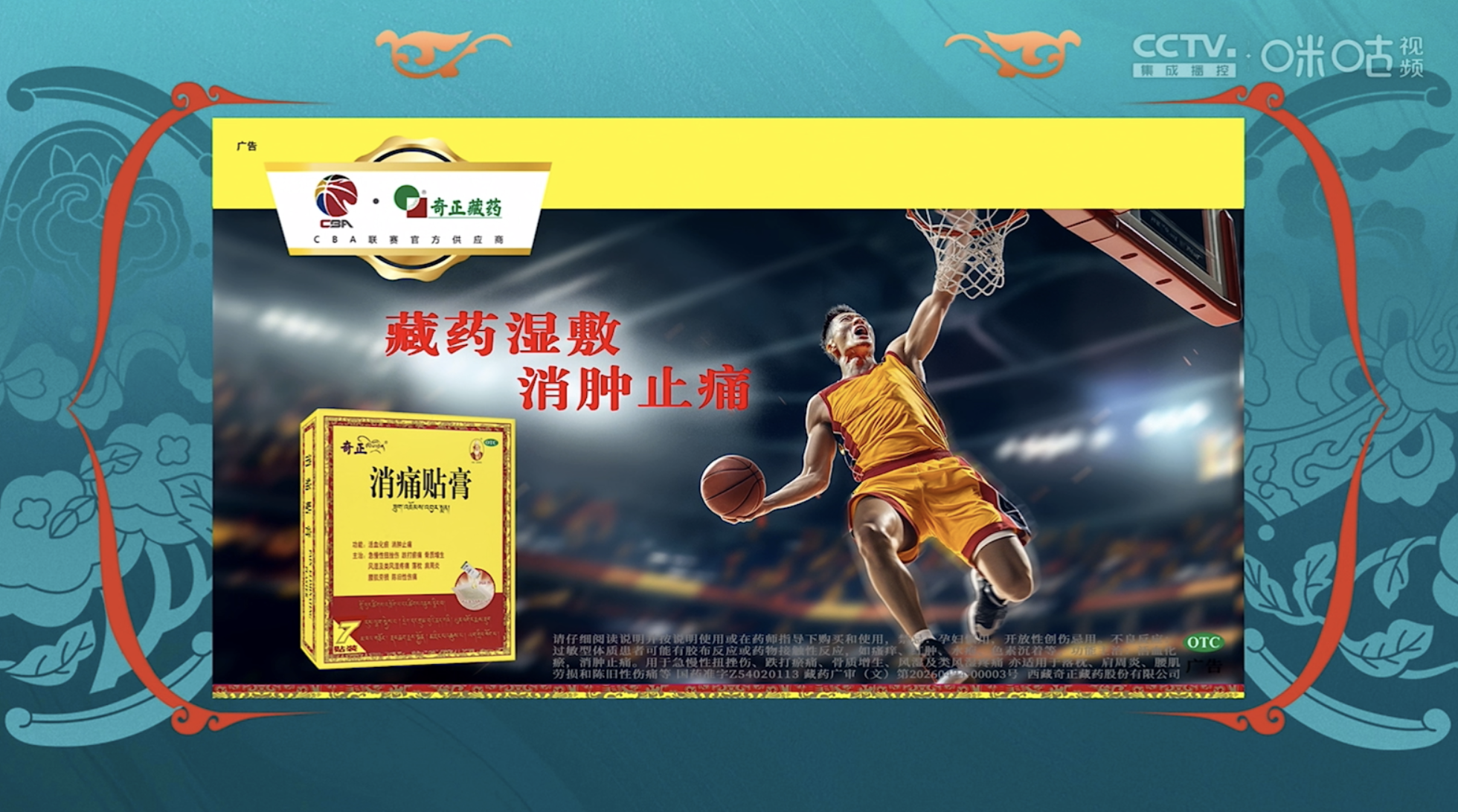 随着全民健身热潮的兴起,健康消费从“被动治疗”转向“主动管理”,运动人群对运动损伤预防与治疗的需求激增。奇正藏药瞄准中青年运动人群的刚需场景,携手咪咕CBA,以顶级体育赛事为支点,开创“体育健康生态”新场景。