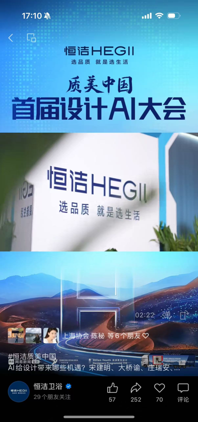 ①推动品牌与设计圈层的深度融合:通过AI设计大会强化恒洁与设计师群体的连接,巩固“设计师首选卫浴品牌”形象。