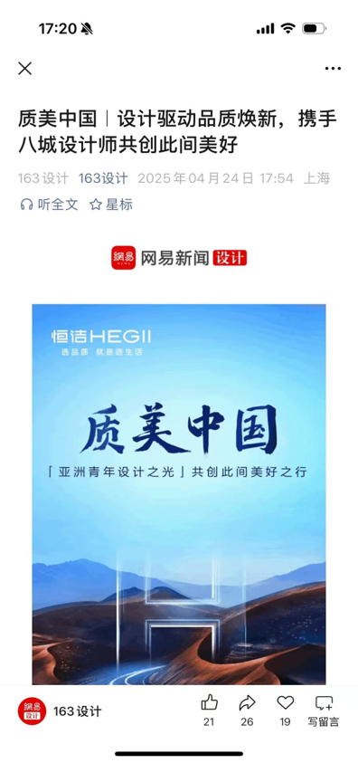 【质美中国】是国货领军品牌恒洁携手权威媒体网易传媒联合打造的设计师圈层超强IP