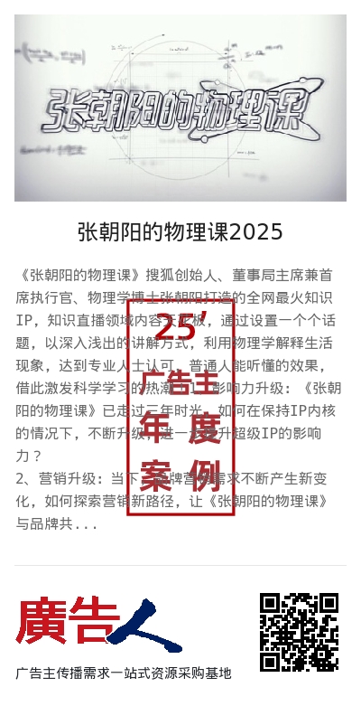 2、营销升级:当下,品牌营销需求不断产生新变化,如何探索营销新路径,让《张朝阳的物理课》与品牌共舞,实现双赢?