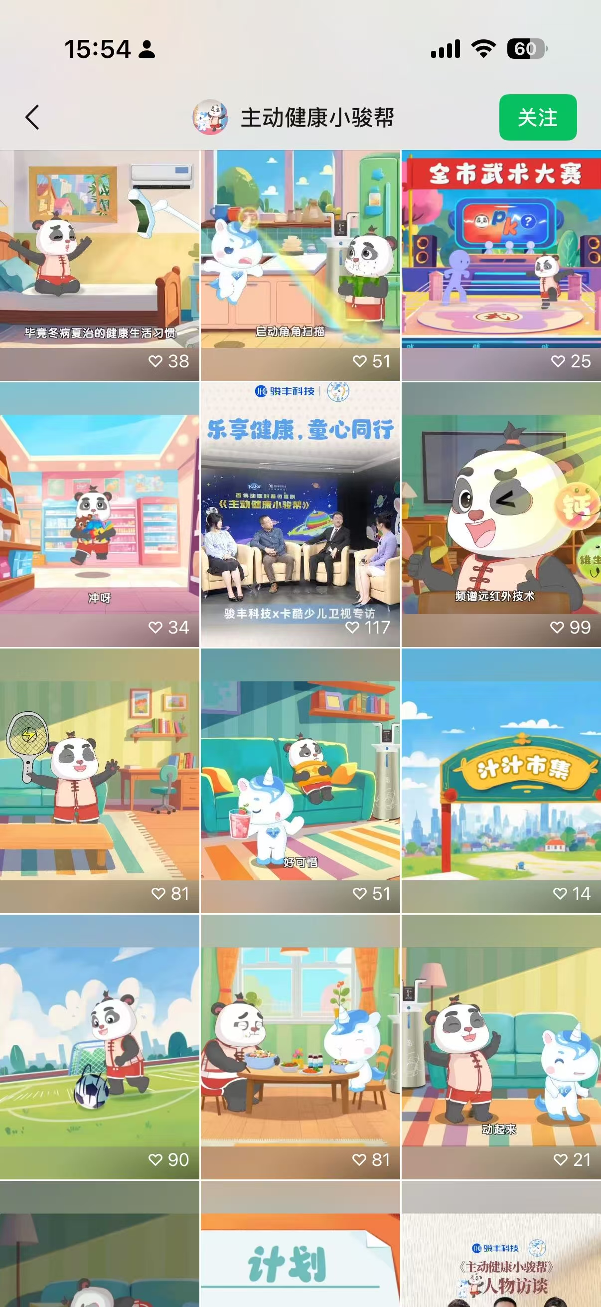 以“小骏”和卡酷朋友们的冒险故事或生活场景展开,打造一部寓教于乐的健康科普动画系列短片。从“主动健康”的品牌理念出发,通过合家欢喜闻乐见的动画短片,让广大亲子家庭了解被忽略的健康小知识,成为个人健康的第一责任人。从而建立观众与“小骏”动画形象的情感链接,配合多渠道的宣发推广,提升骏丰频谱品牌知名度和美誉度,树立专业、亲民的品牌形象,让骏丰科技的用户粘性得到有效提升。